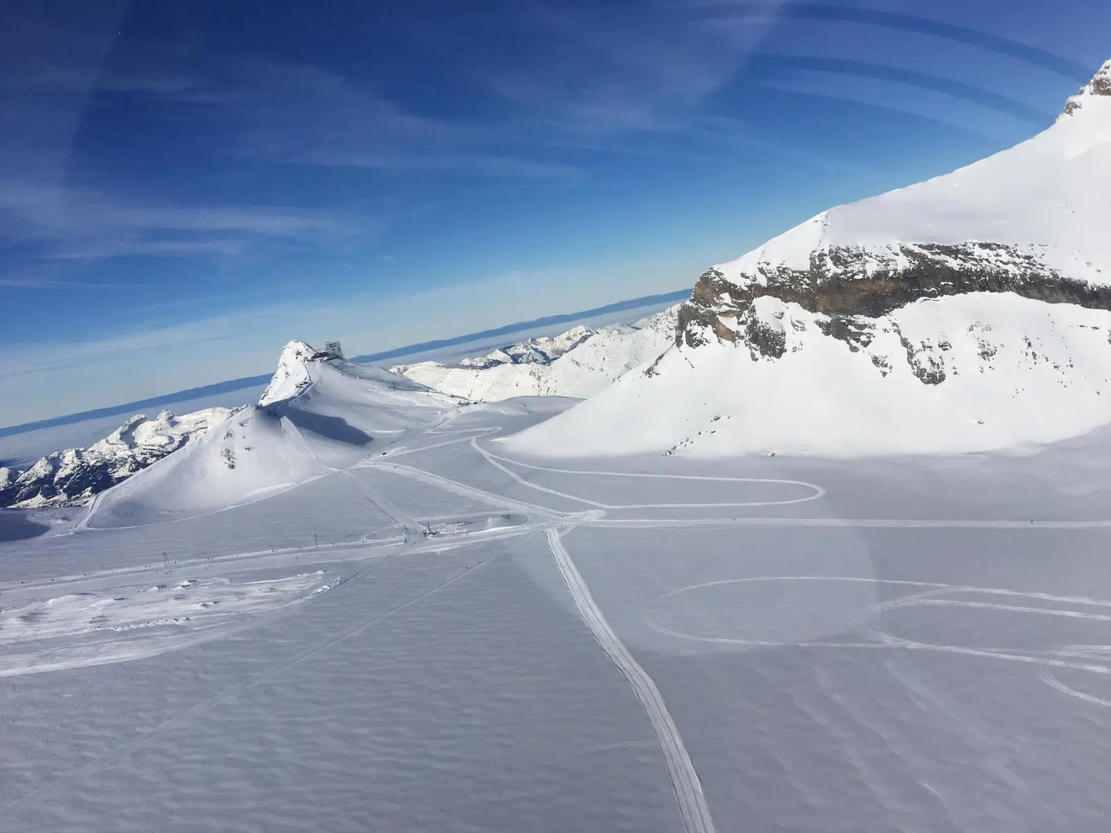 Un vol panoramique au-dessus du Glacier 3000 permet :