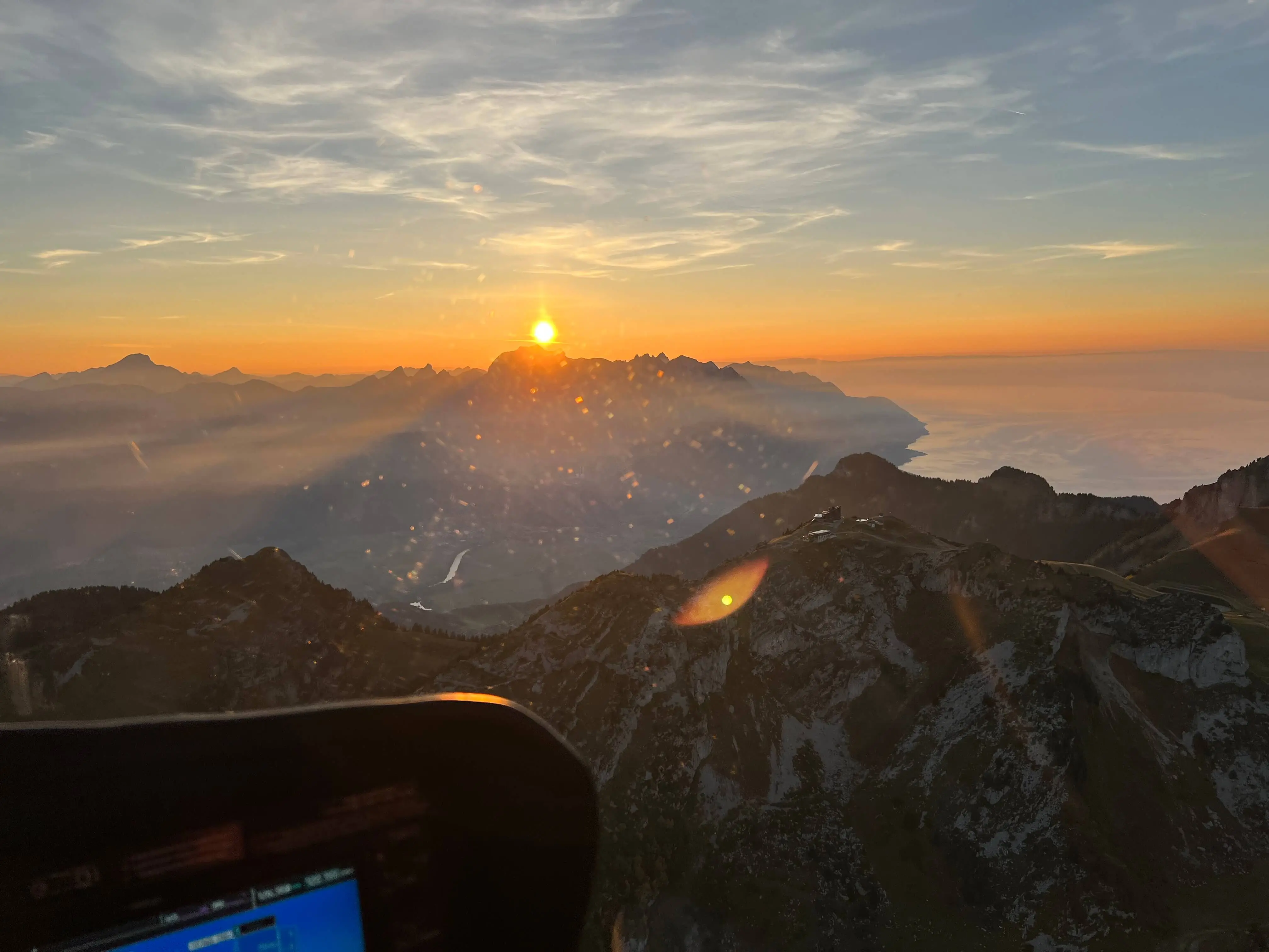 Aus dem Helikopter zeigt sich der Genfersee in seiner ganzen Weite mit seinen charakteristischen Uferlinien.